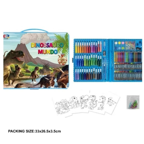 Kit Estojo Material Escolar Maleta De Pintura Infantil 68 Peças Para Colorir Escolar + 6 Desenhos Dinossauro Kit de Desenhar Canetinhas