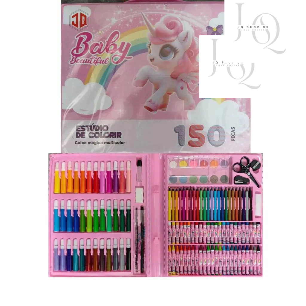 Maleta De Pintura Infantil Estojo 150 Peças Para Colorir Kit de Desenhar Canetinhas Unicórnio Dinossauro