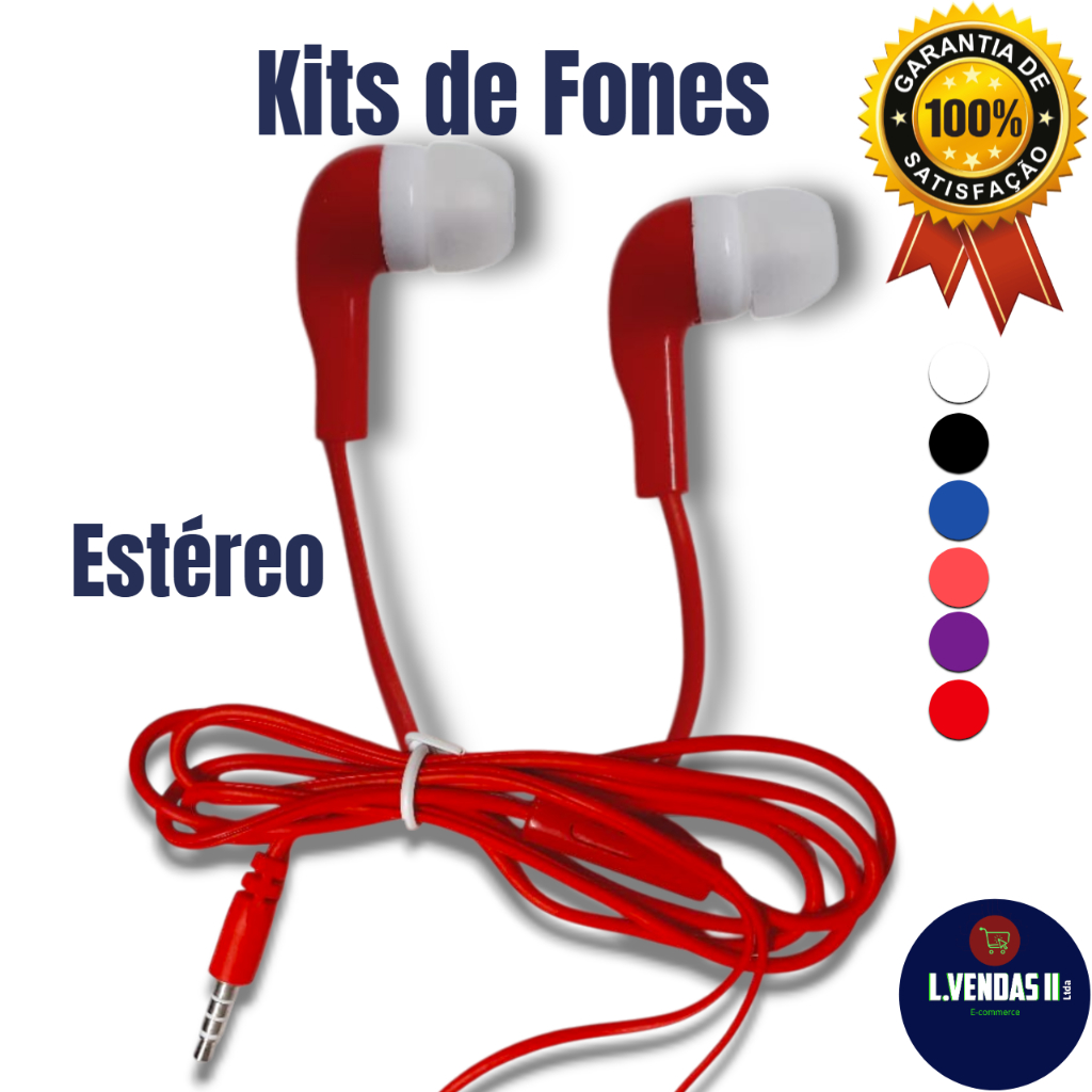 Kit Fone de ouvido com fio e microfone Stereo Headphone Saquinho Cores Sortidas