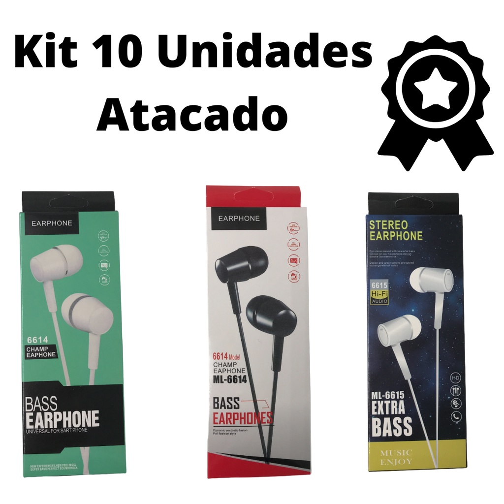 Kit c/10 Fones de Ouvido com Fio e Microfone Stereo entrada p2 ml-6613