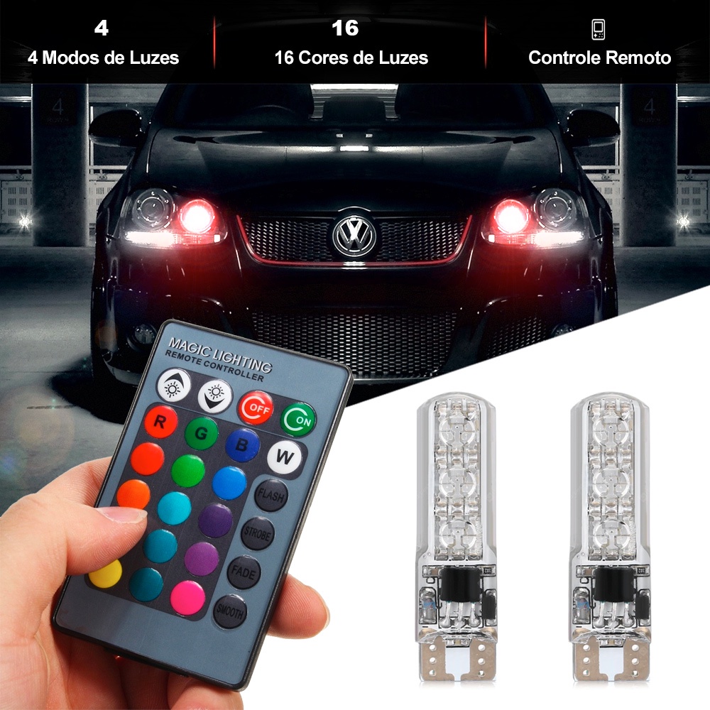 Par Lâmpadas Pingo T10 Led Rgb 16 Cores Controle Lanterna Farolete Honda Civic 2010 2011 2012 2013 2014 2015