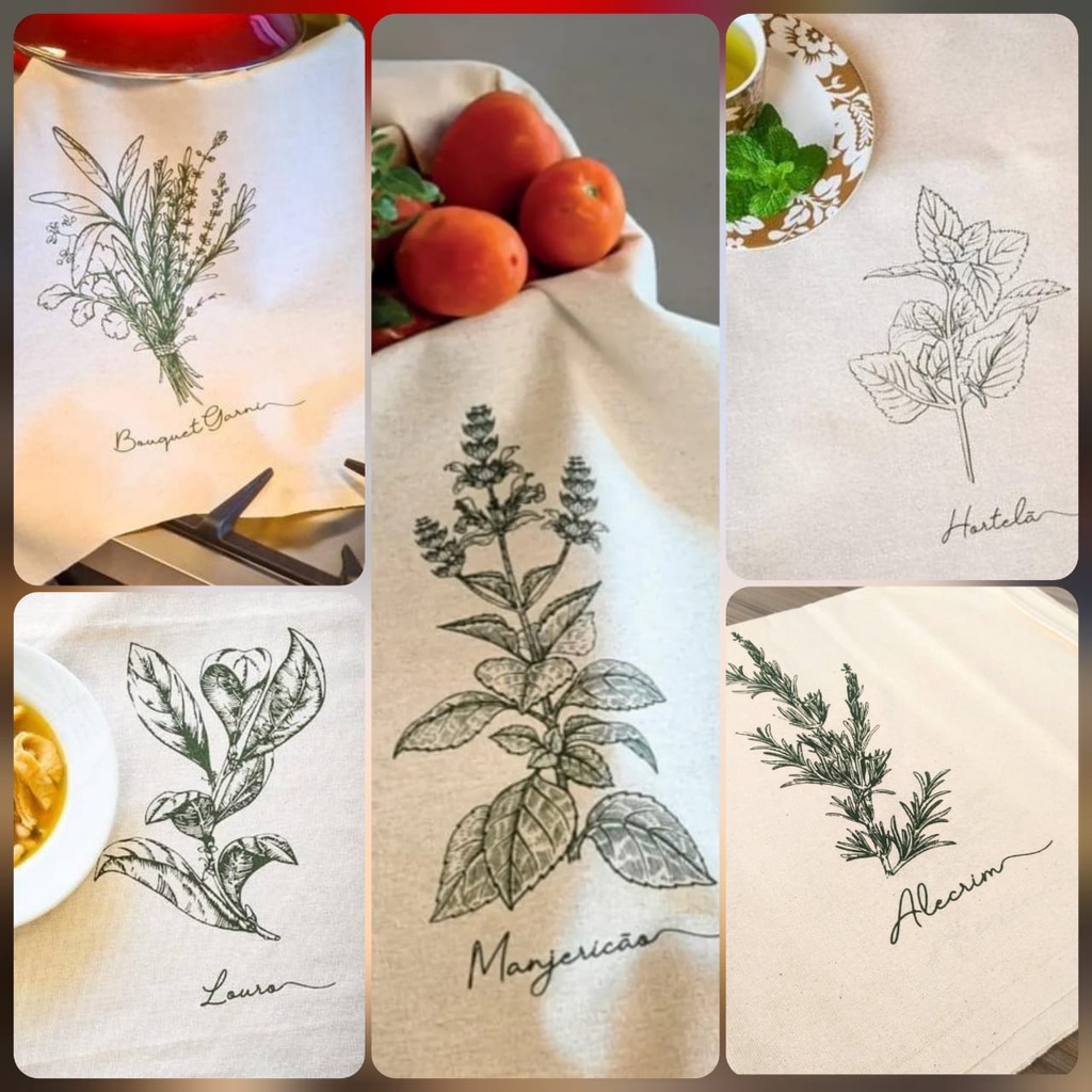 Kit 10 Panos de Prato Rústico Coleção Especiarias/Temperos Engomatextil/Estilotex 45x72cm 100% Algodão