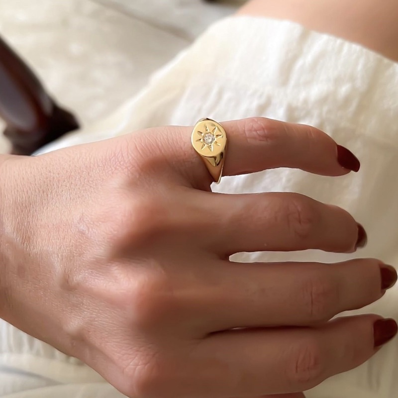 Anel de dedinho/mindinho sol estrela com zircônia regulável