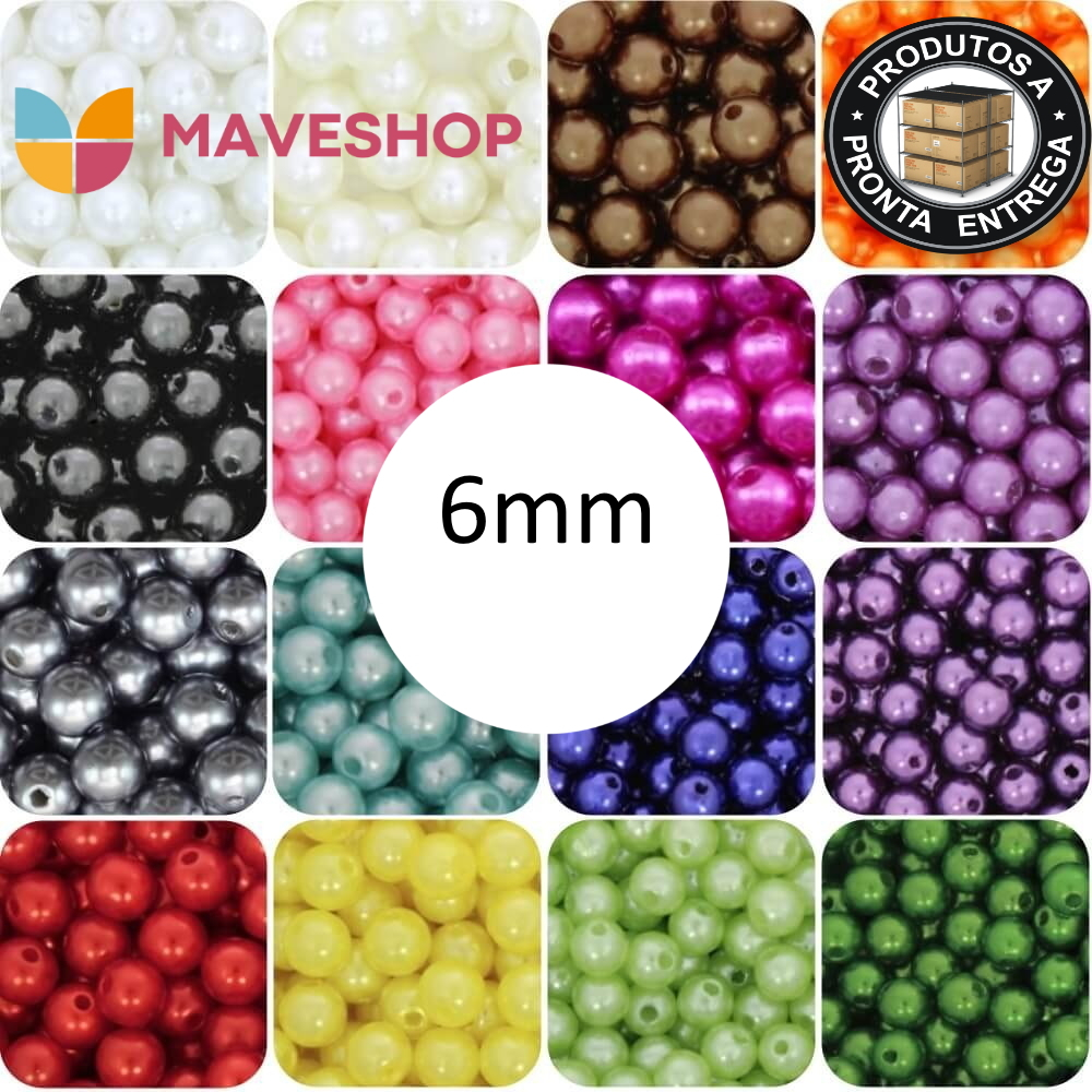 Kit 1500pçs pérola 6mm Abs com furo miçanga diversas cores