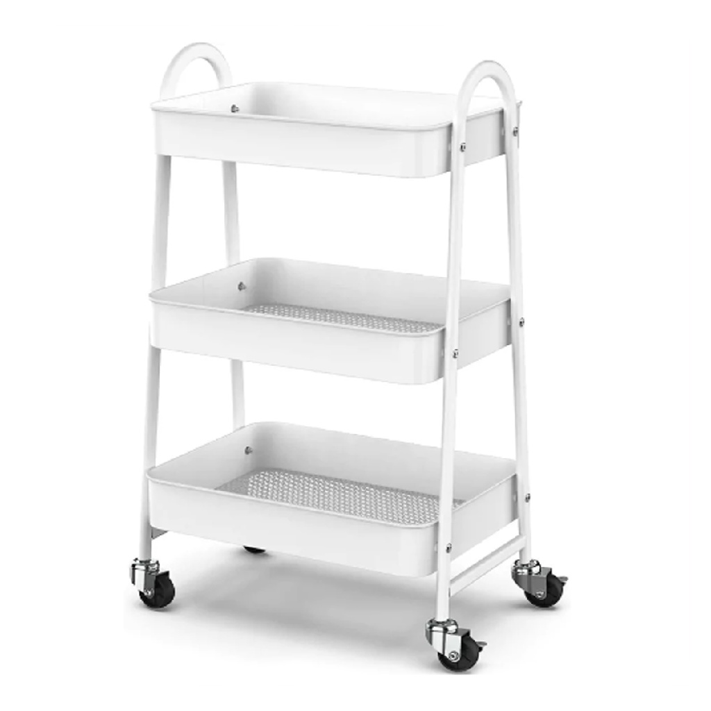 Prateleira carrinho organizador de metal multiuso Branca 3 andares com rodinhas GH209 Globalmix