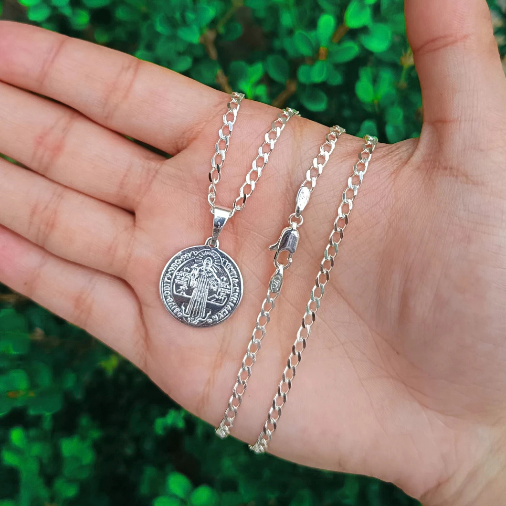 Escapulário Colar Masculino Prata 925 Pura São Bento Medalha Colar Corrente Cordão