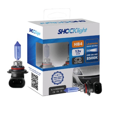 PAR LAMPADA CARRO HALOGENA AUTOMOTIVA SUPER BRANCA ENCAIXE HB4 (9006) PARA FAROL CARRO 12V 55W 8500K INMETRO