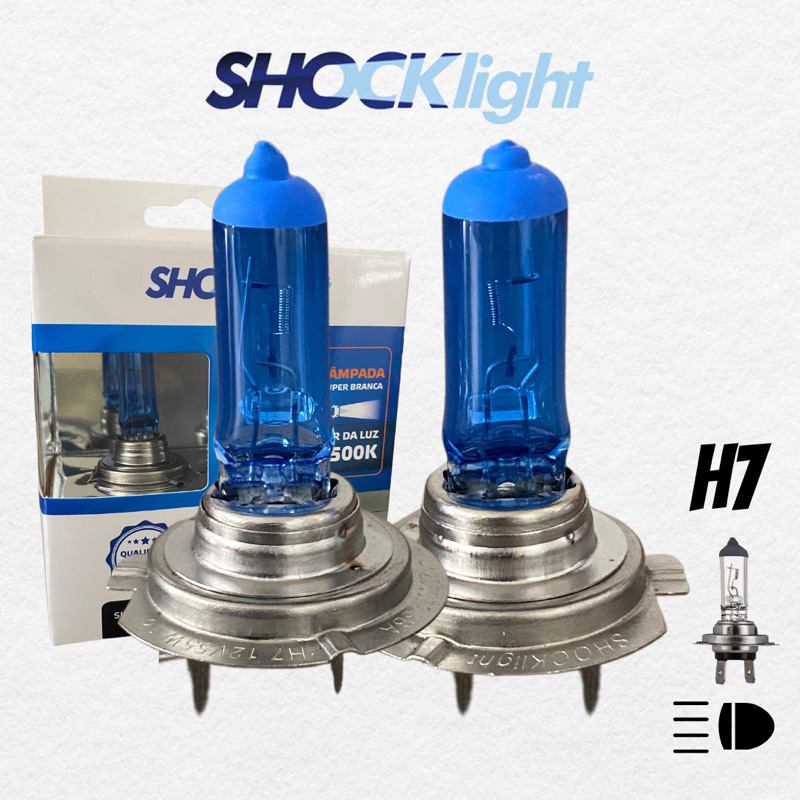 Par Lâmpada Automotiva Super Branca H7 12V 55W - Carro - 8500K Cor Branco - Shocklight - INMETRO