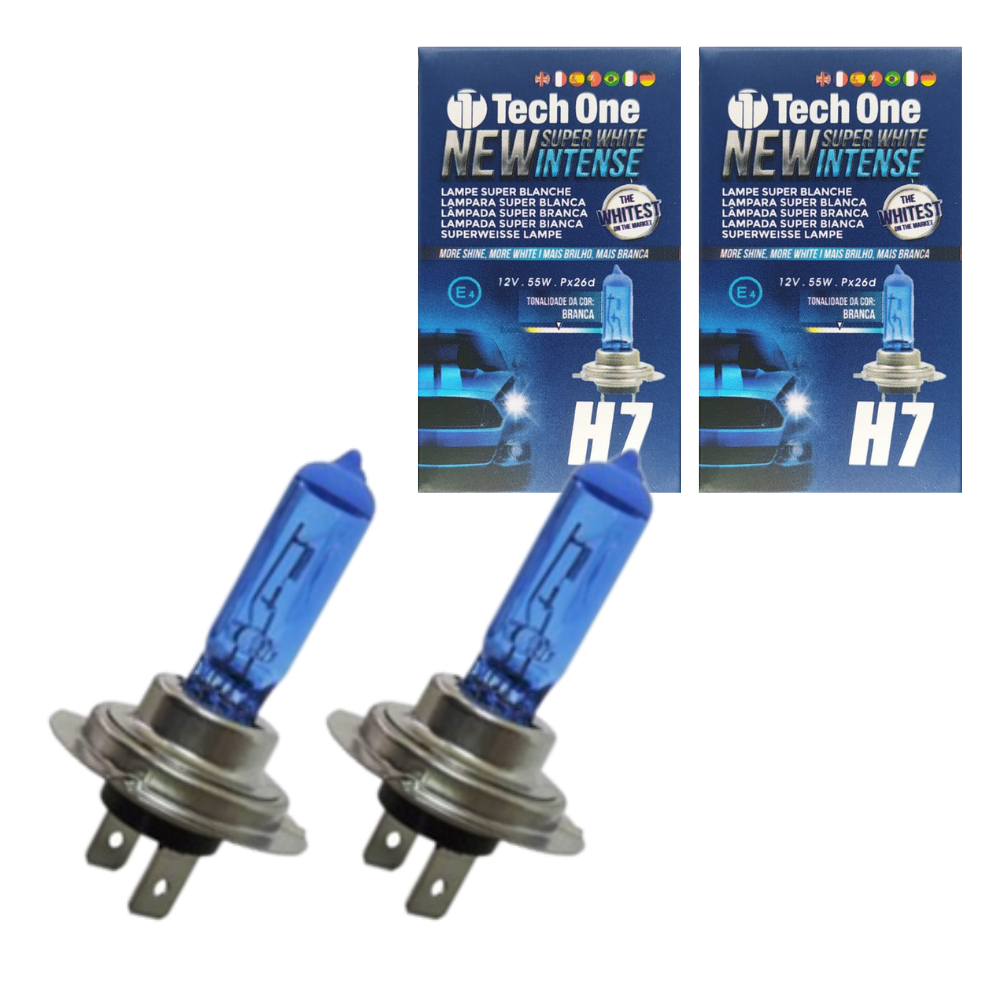 PAR LÂMPADA H7 SUPER BRANCA 55W 12V 8500K TIPO XENON TECH ONE