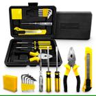 Maleta de Ferramentas Kit 129 Peças Essenciais para Casa 123 Útil Chaves Alicates Martelo Nível Estilete Trena