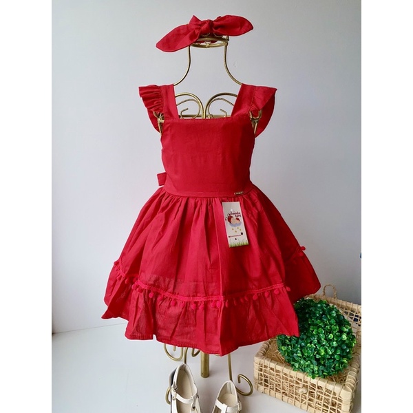 Vestido Infantil Vermelho Branco Natal Menina Bebe Pompom