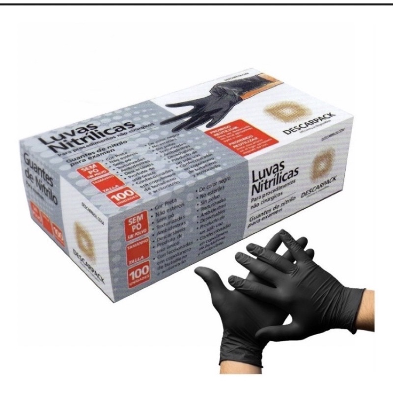 Luva Nitrilica Preta Descartável Sem Pó Resistente P/M/G 100 unidades Descarpack