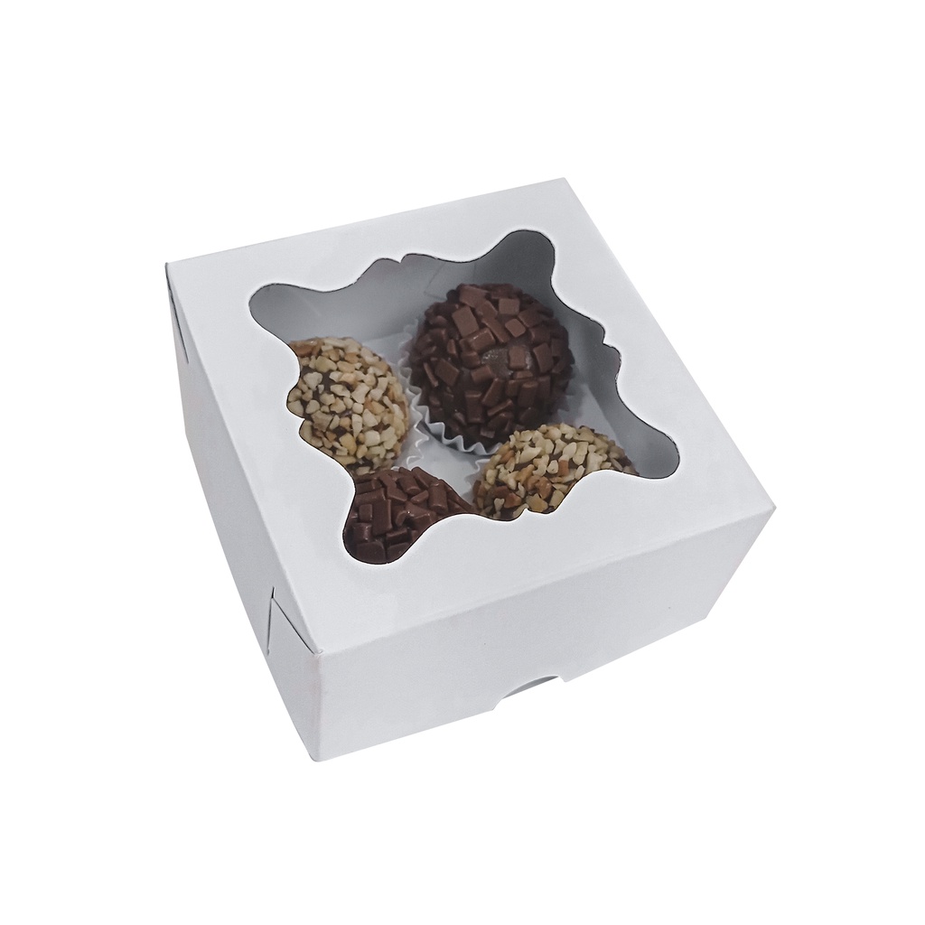 Caixa Para Doces Trufas Bombom 20x20x6 Branca Com Visor - 20 Unidades