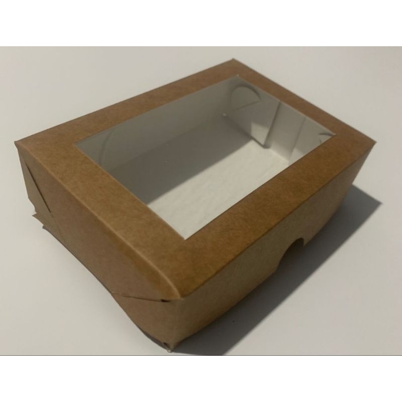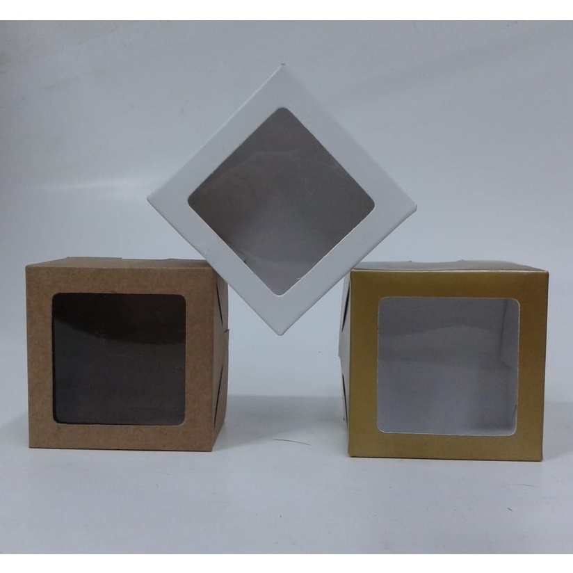 Kit 20 caixas com visor 7,5x7,5x3 cm. Embalagem kraft para lembrancinha, doces, brownie e artesanato.
