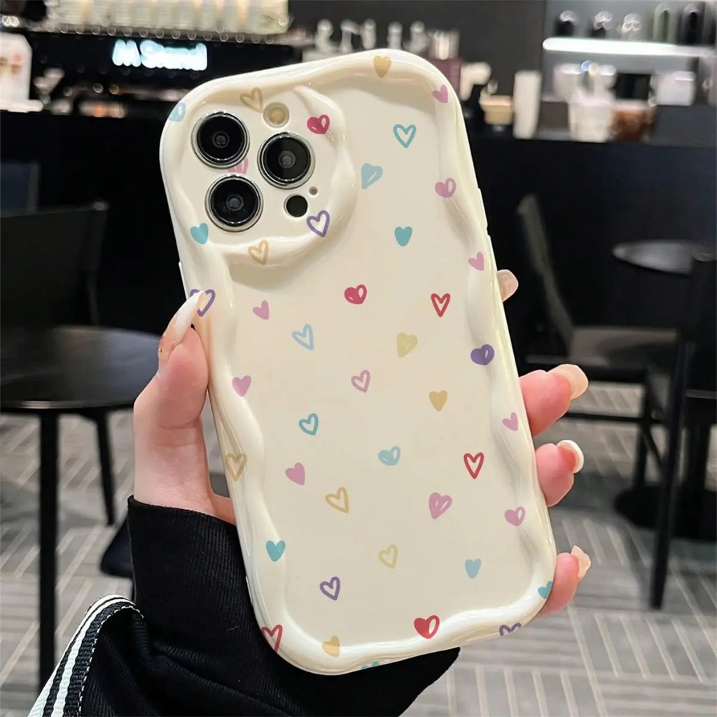 Casal De Amor Coração 3D Ondulado Caixa De Borda Curva Ondulada Para Samsung Galaxy A04 A13 A04S A14 A22 A23 A24 A30 A31 A32 A33 A34 A50 A34 A52 A53 A54 5G 4G A02S A03 Núcleo A04E A10 A11 A21S Capa Da