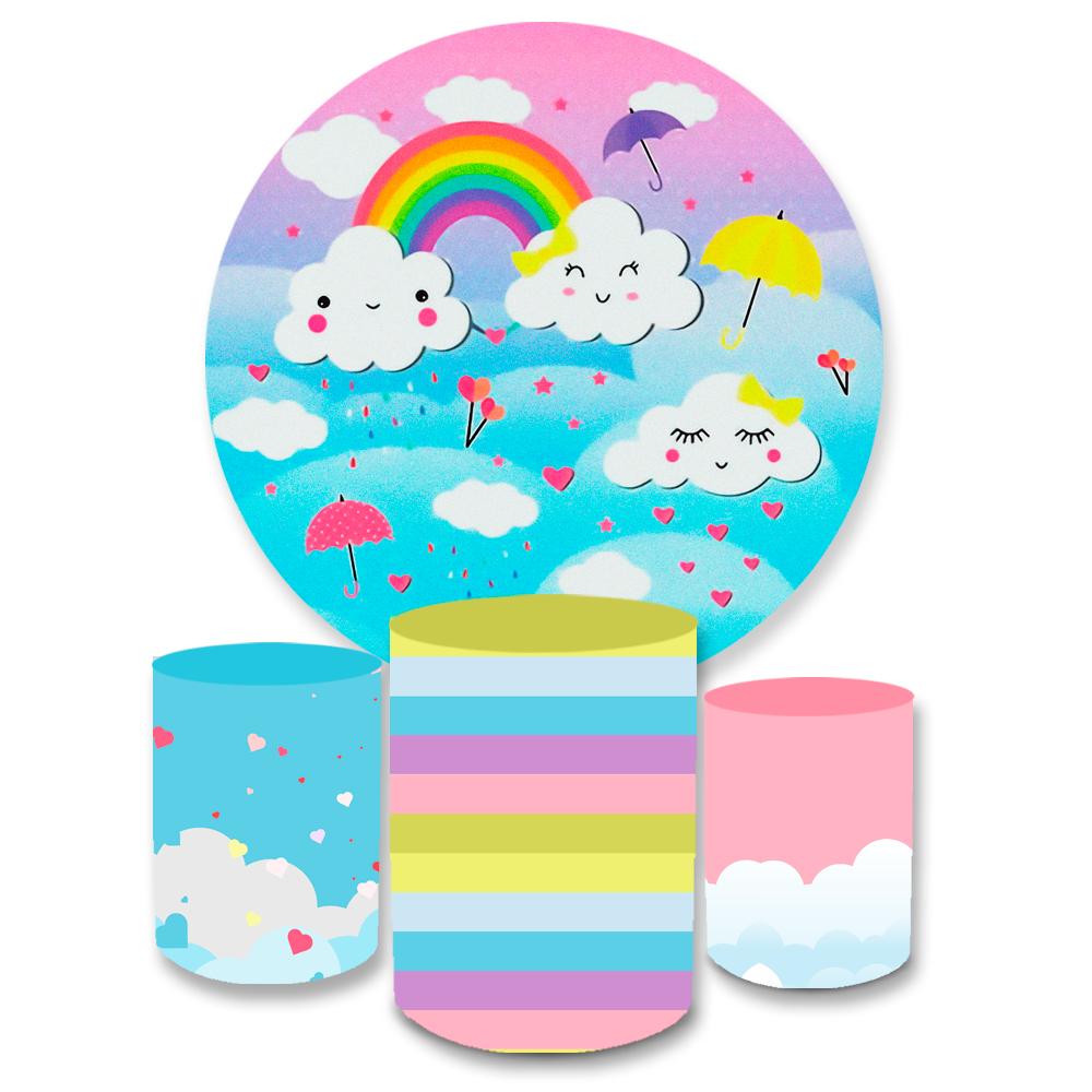 Kit Painel Decorativo 1,50x1,50 Chuva de Amor + Trio Capa Cilindros Veste Fácil