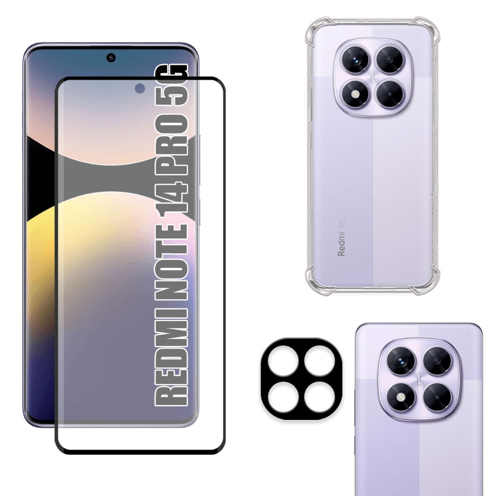 Kit Para Redmi Note 14 Pro 5G | Película Fosca de Cerâmica - Capa Anti Shock - Película da Câmera 3D