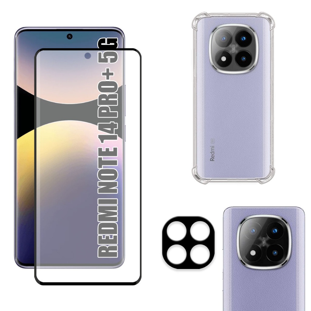 Kit Para Redmi Note 14 Pro Plus 5G | Película Fosca de Cerâmica - Capa Anti Shock - Película da Câmera 3D