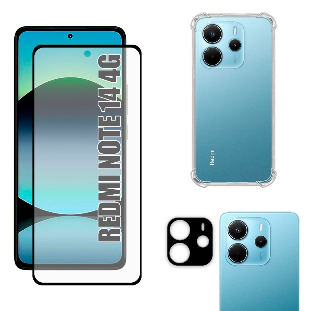 Kit Para Redmi Note 14 4G | Película Fosca de Cerâmica - Capa Anti Shock - Película da Câmera 3D
