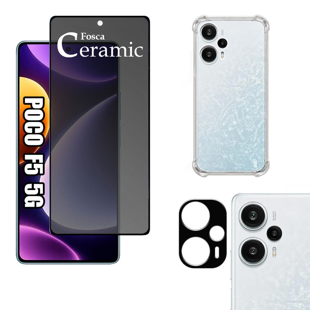 KIT Para Xiaomi Poco F5 5g | Película Privacidade Fosca 9D - Capa Anti Impacto - Película da Câmera 3D