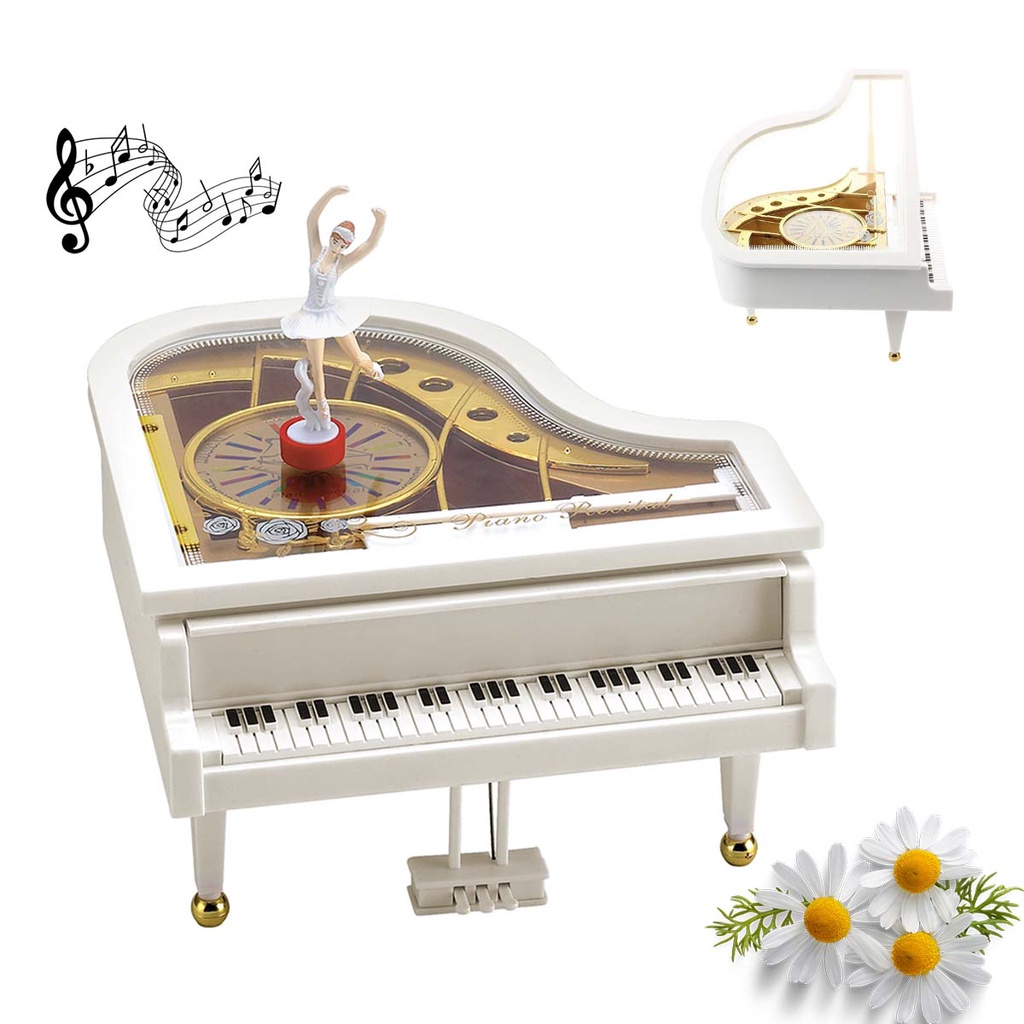 Porta Jóias Musical com Bailarina Piano Retrô Infantil Caixinha de Música Presente