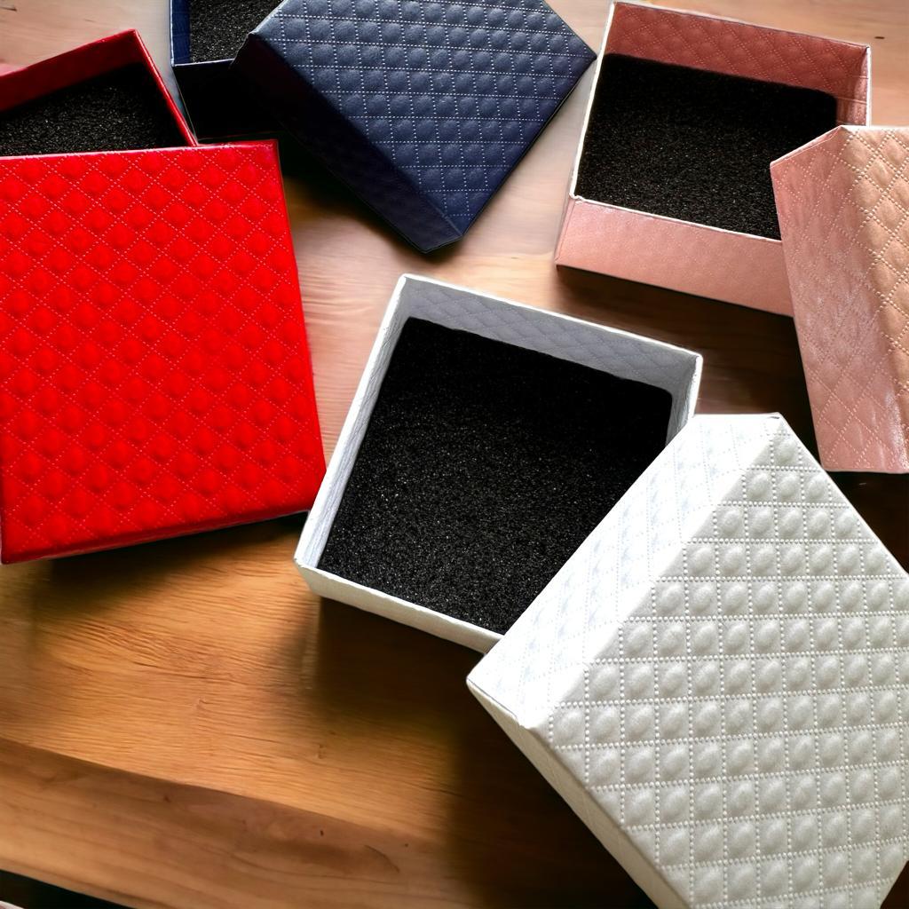 Caixinha Presente para Joias, Bijours , Semi Joias 8 x 8 x 3,5 com berço para colar, brinco e anel - kit com 50 unidades