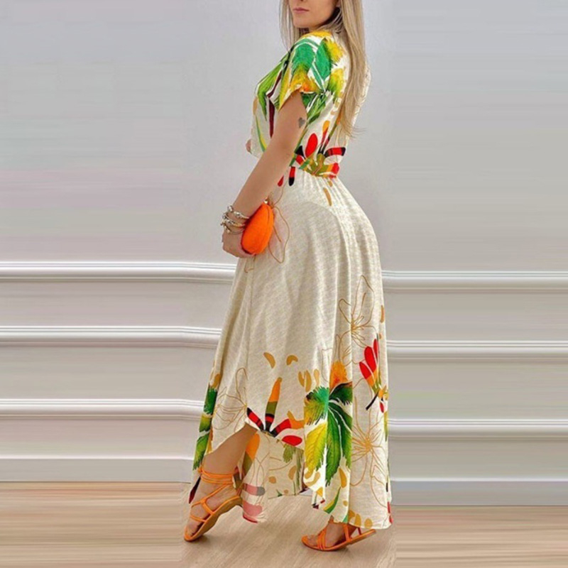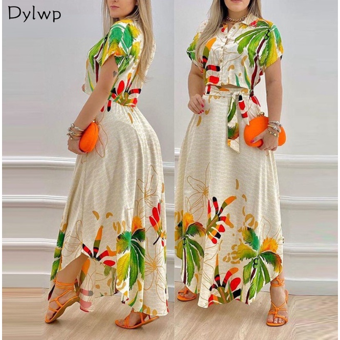 Conjunto De Camisa De Manga Curta E Saia Longa Moda De Verão Impressa Em Duas Peças
