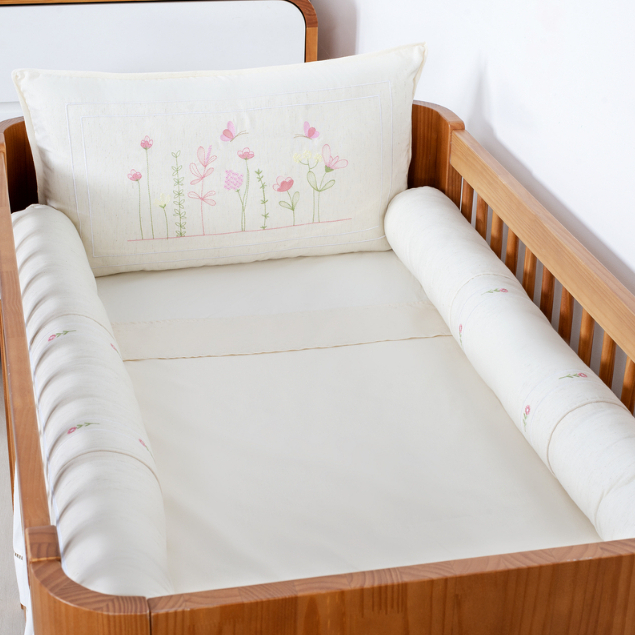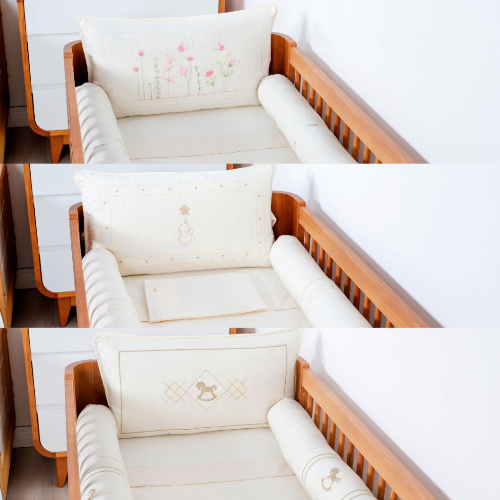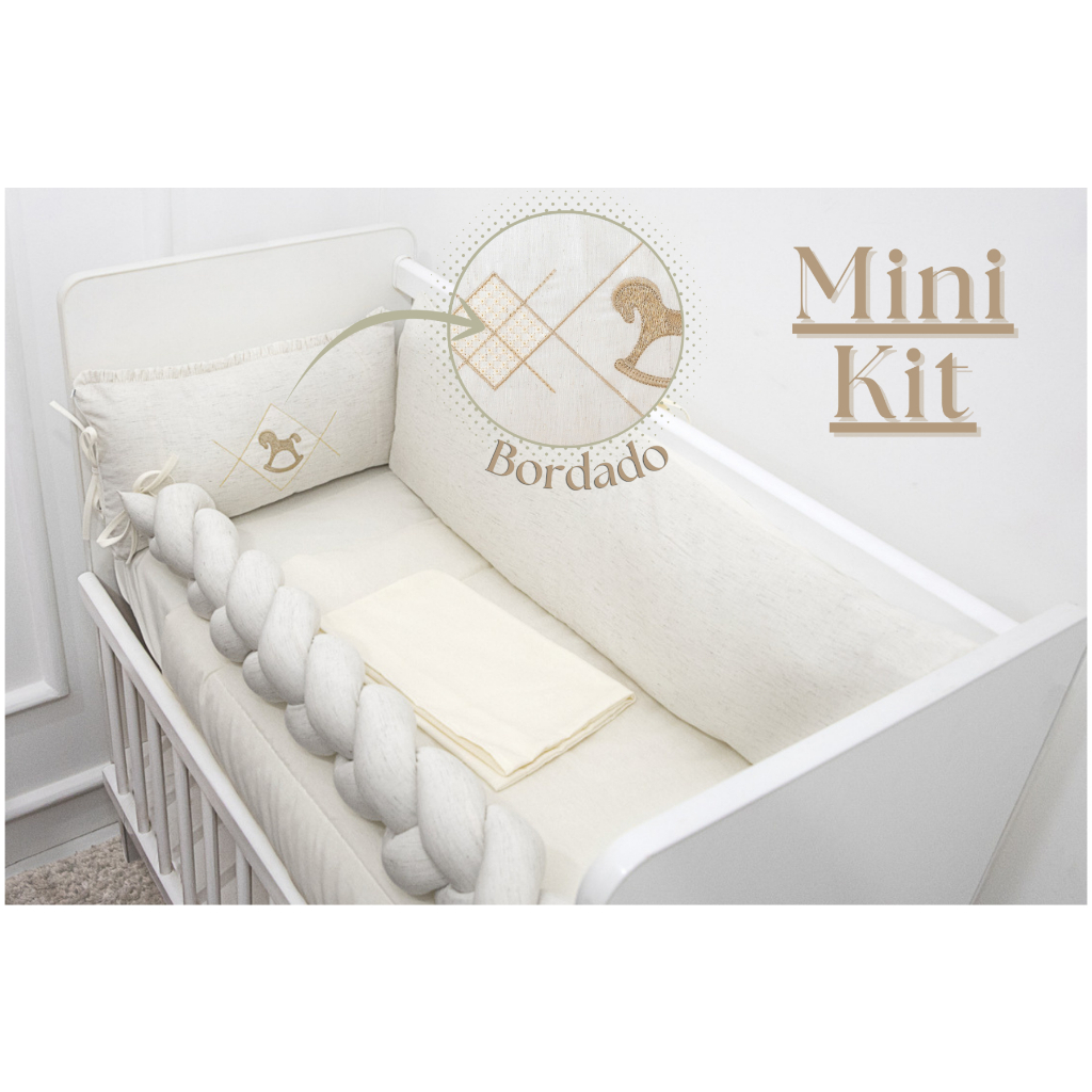 Kit Mini Berço 7 Peças Linho Bordado Menina Menino Amamentação Brubrelel Algodão Amamentação Flor Cavalinho Bordado Neutro Unissex Menina Feminino Masculino Bege Brubrelel Baby Trocador Linho Luxo