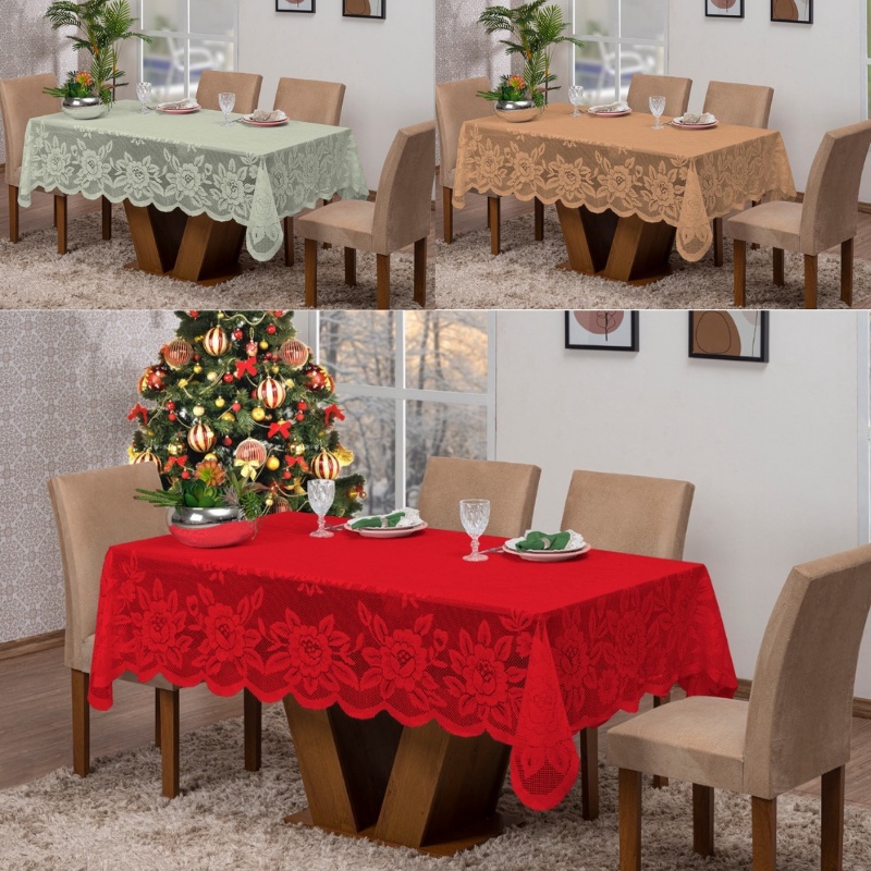 Toalha De Mesa Renda 4 e 6 Cadeiras Quadrada/Retangular Branca Bege e Vermelha - Envio Rápido - Soul de Casa