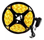 Fita LED 5050 Branco Quente Amarelo 300 LEDs 5 metros + Fonte 12V Bivolt para Sanca Gesso - Ideal para Iluminação Decorativa e Ambientes Interno - MGC