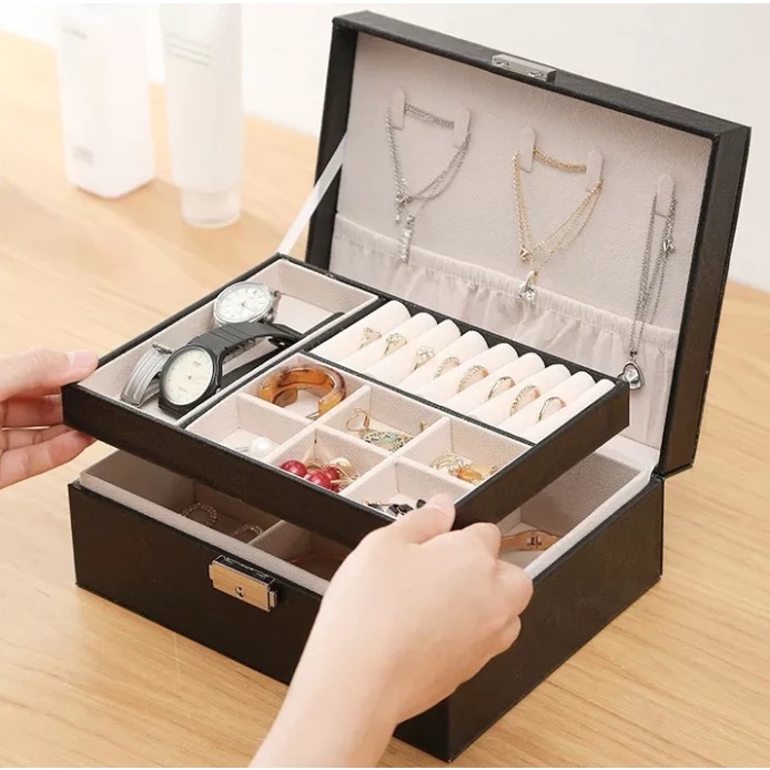 Maleta Porta Joias Grande Portátil Viagem C/ Fechadura Luxo Multifuncional