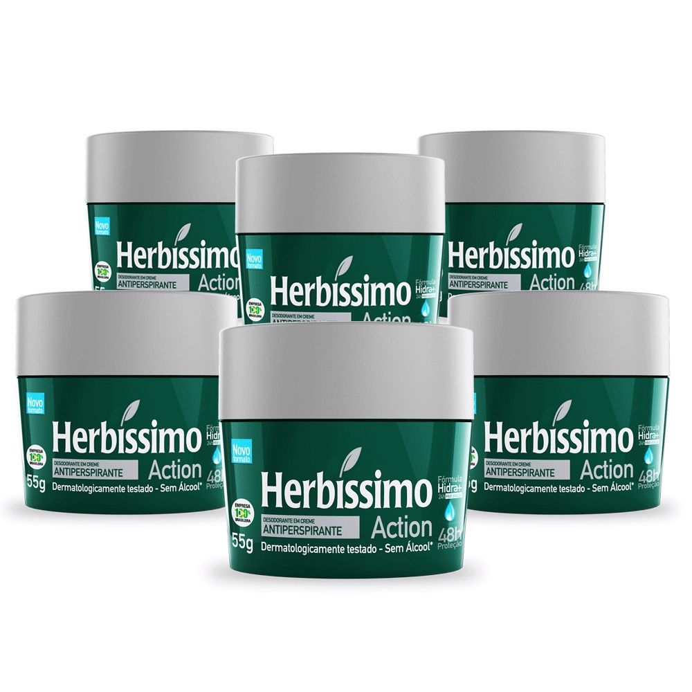 Kit Desodorante Creme Antitranspirante Action Herbissimo 55G com 6 unidades