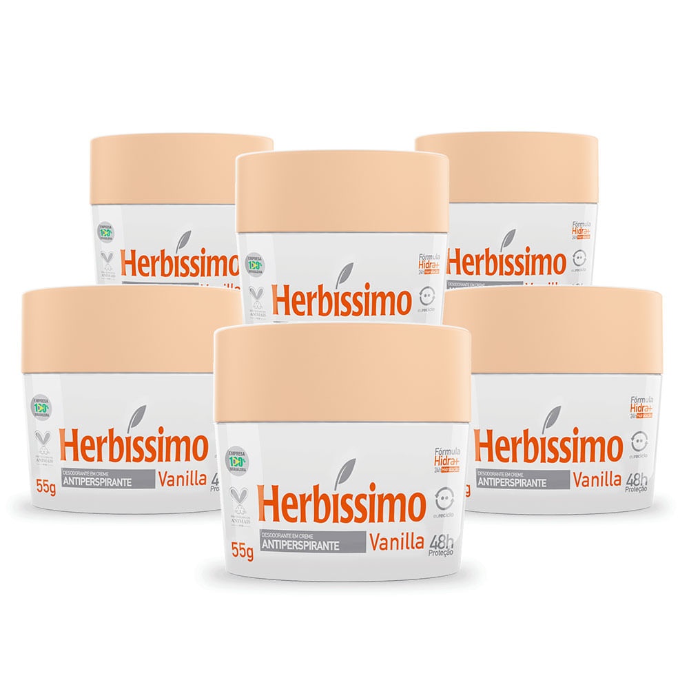 Kit Desodorante Creme Antitranspirante Vanilla Herbissimo 55g Com 6 Unidades