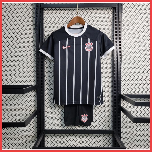 Nova 2023/2024 Infantil Conjunto Camisa de Time Futebol Corinthians Preto Camiseta 100% poliéster + escudo bordado