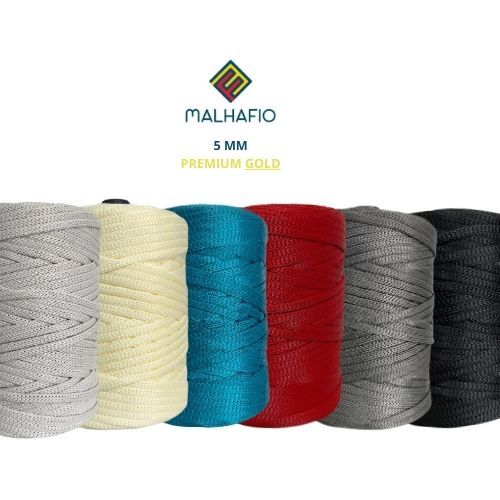 Fio Náutico Premium MALHAFIO-MESCLA (PRETO/PRATA/DOURADO)-5mm 100% poliéster 500g - Crochê e Artesanato em Geral