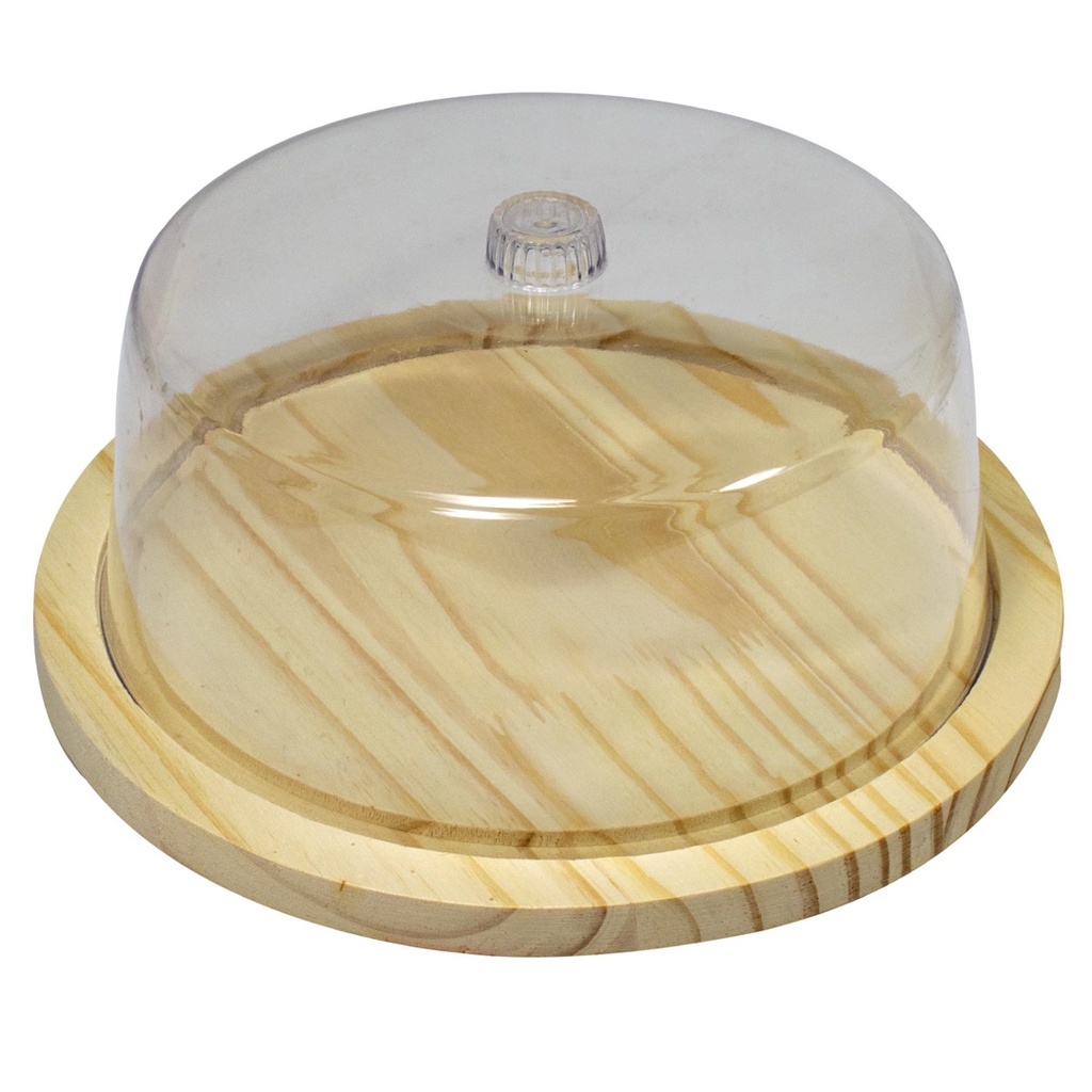 Boleira Grande de Madeira Natural com Tampa em Acrílico