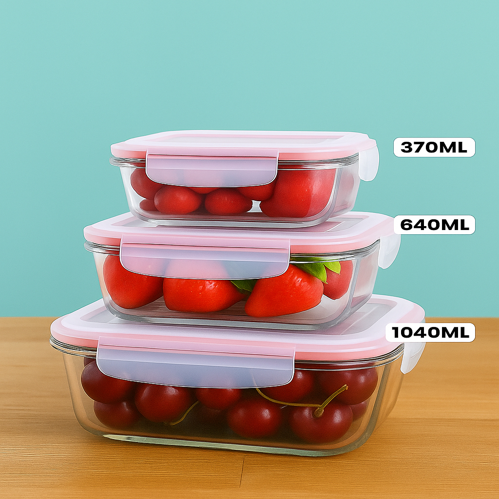 Kit Potes De Vidro Retangular Herméticos 370ml 640ml 1040ml