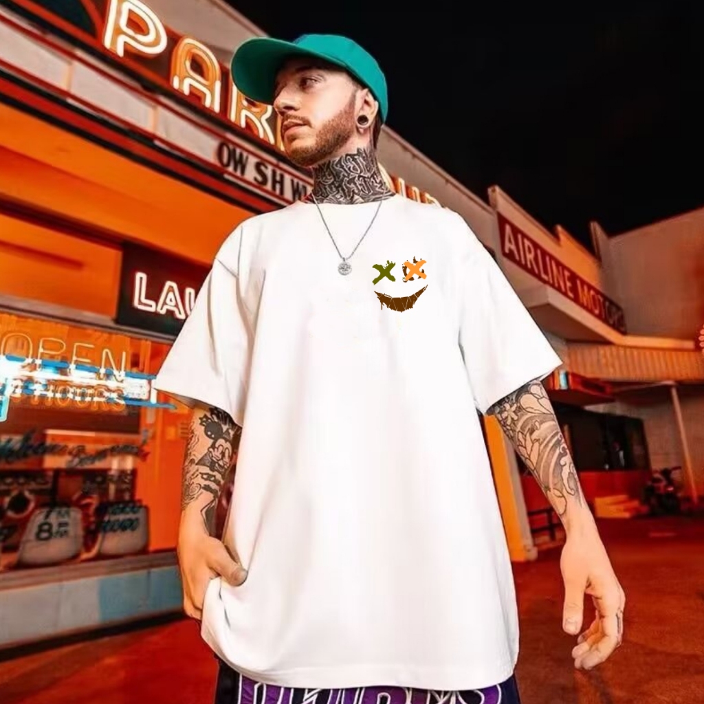 Camiseta Masculina Unissex Oversized sorriso malvado street wear algodão 30.1 estampada sorriso
