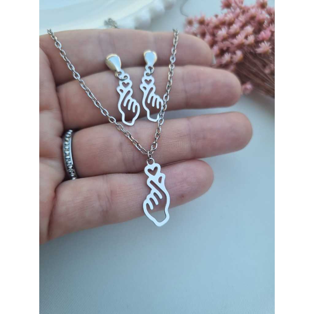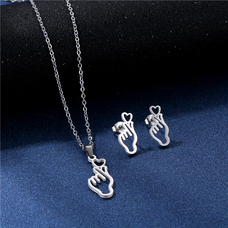 Conjunto De Colar E Brinco De Coração Coreano /Pingente De Gesto De Aço Inoxidável/Jóias Para Casal Presente De Dia Dos Namorados