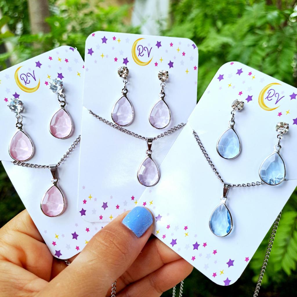 Conjunto Gota de Cristal Aço Inoxidável Colar e Brinco