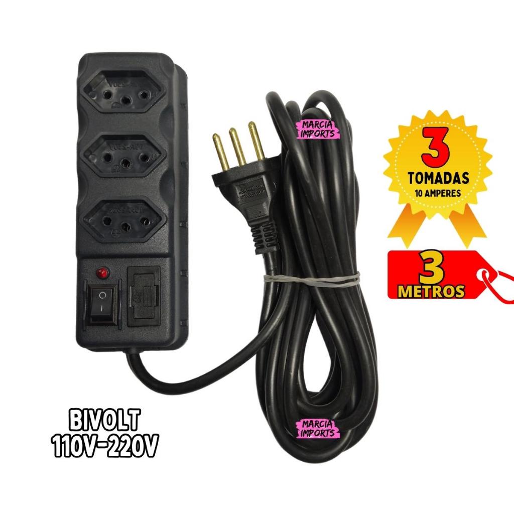 FILTRO DE LINHA RÉGUA tripolar DE 3 TOMADAS 10 Amperes com fusível 3 METROS Envio Imediato