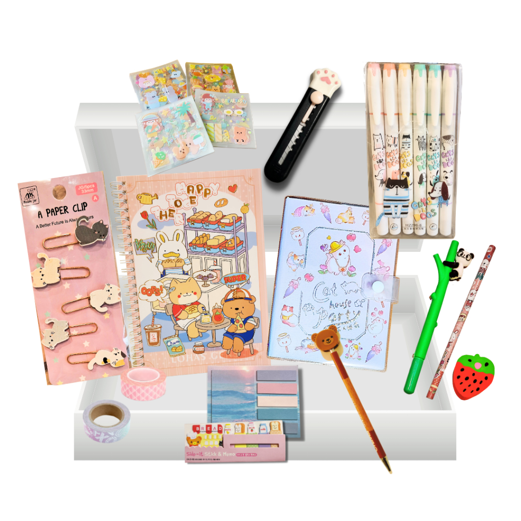 Kit de Papelaria fofa com lápis, caneta, bloco de notas e Muito Mais