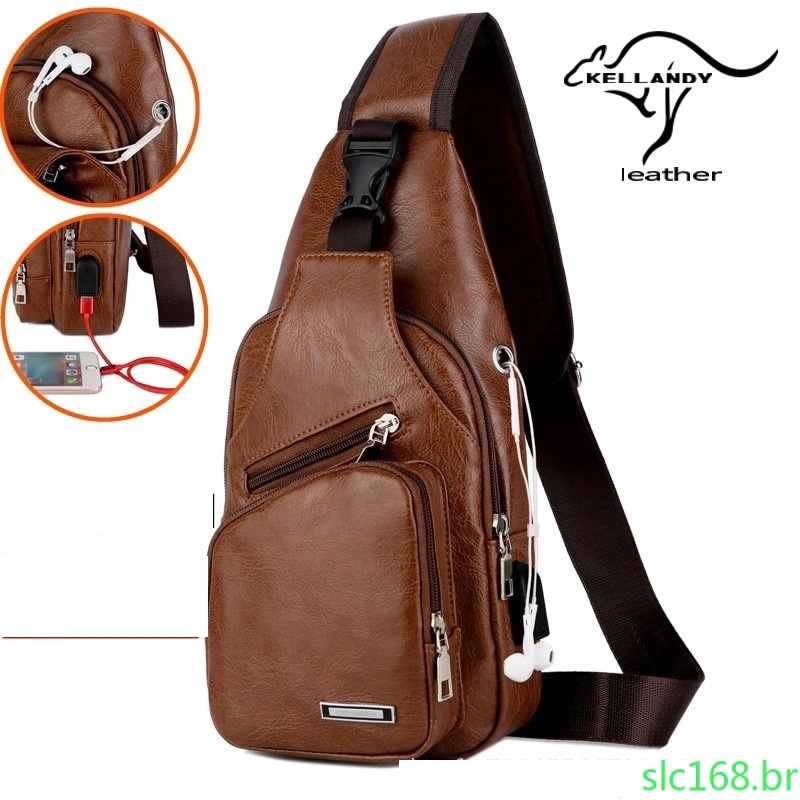 Crazy Bag Bolsa Casual De Couro Para Homens Com Porta Fone De Ouvido USB