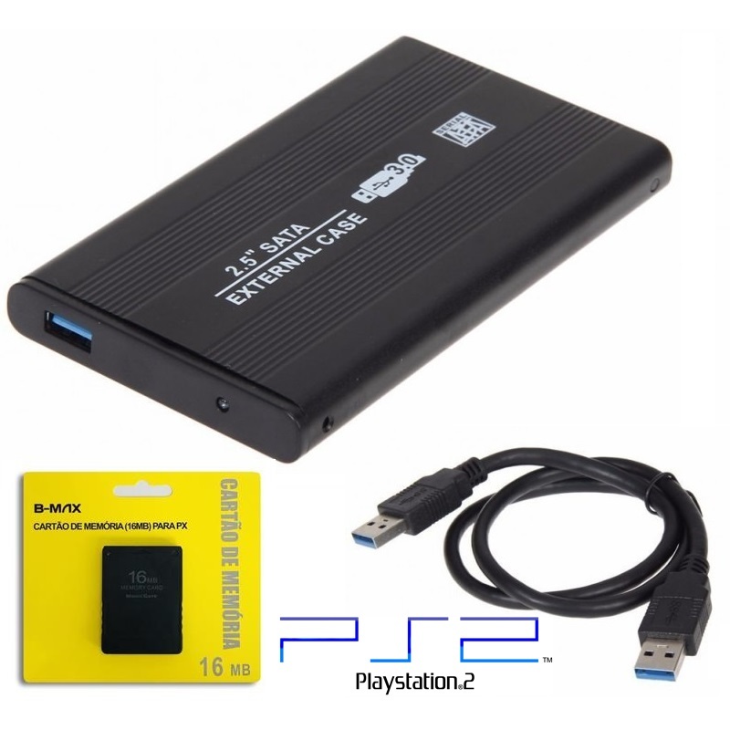 Kit Hd Externo de 320 gb Ps2 lotado de Jogos + memory card com sistema opl instalado atualizado pronto para uso playstation 2 play2