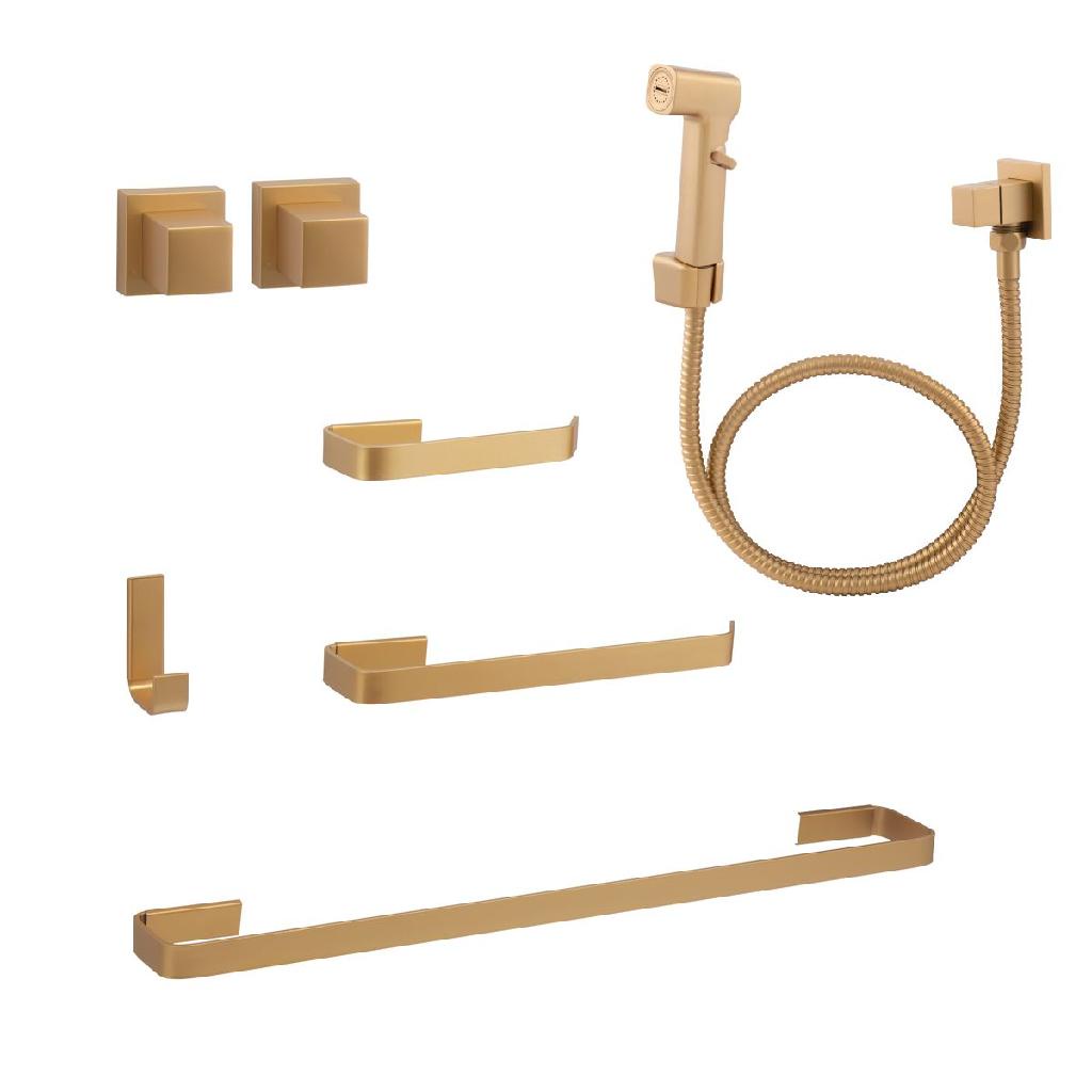 Kit de Acessórios para Banheiro Quadrado Gold Completo Luxo