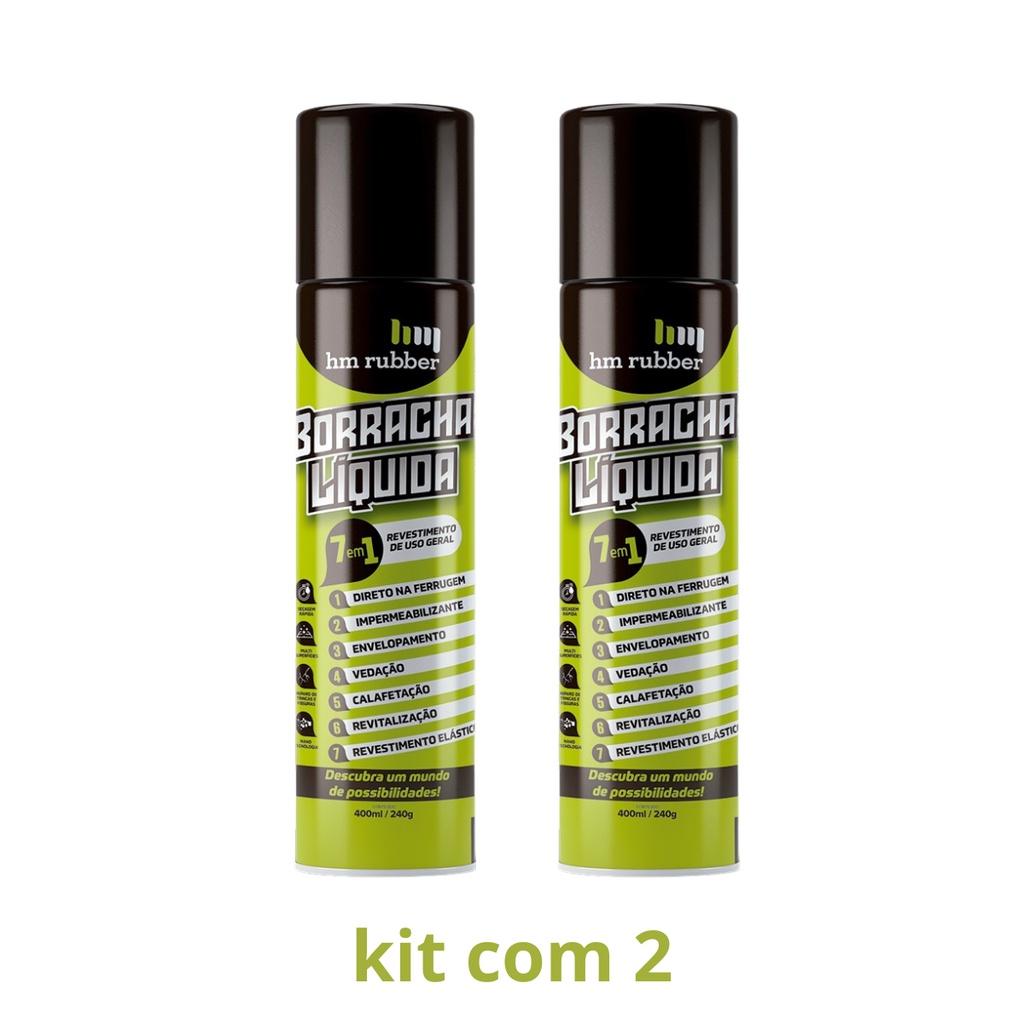 Kit 2 unidades Borracha Líquida Preto Aerossol Spray HM Rubber - Direto Na Ferrugem 7 em 1