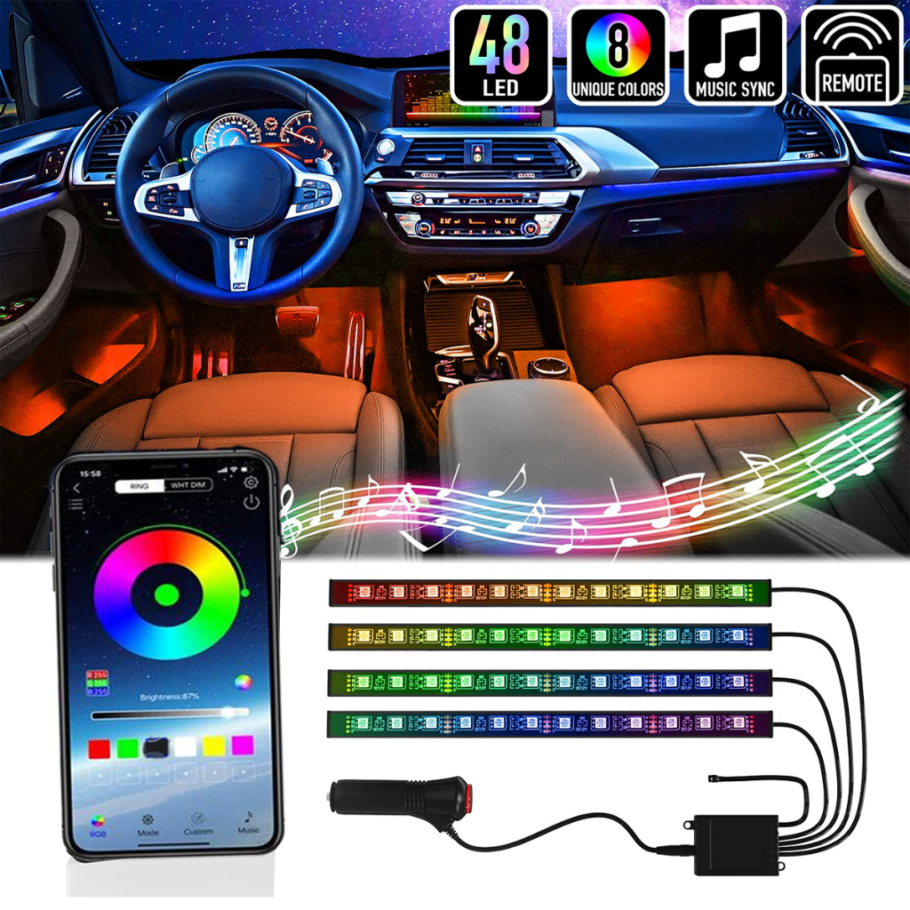 Luz Led Neon RGB Tuning 12v Automotivo 48LED Interno Controle Rítmico