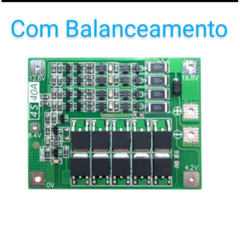 Placa Bms Proteção 4s 40a Balanceamento 16v 16.6v Bateria Lítio 18650 Li-ion Lipo