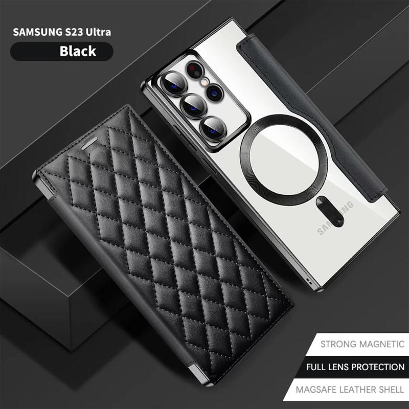 Capa De Couro De Luxo Eletroplatada De Borda Pequena Fragrância De Vento Magnético Para Sumsang Galaxy S24 S23 Ultra Plus Proteção Da Lente Flip Lens À Prova De Choque