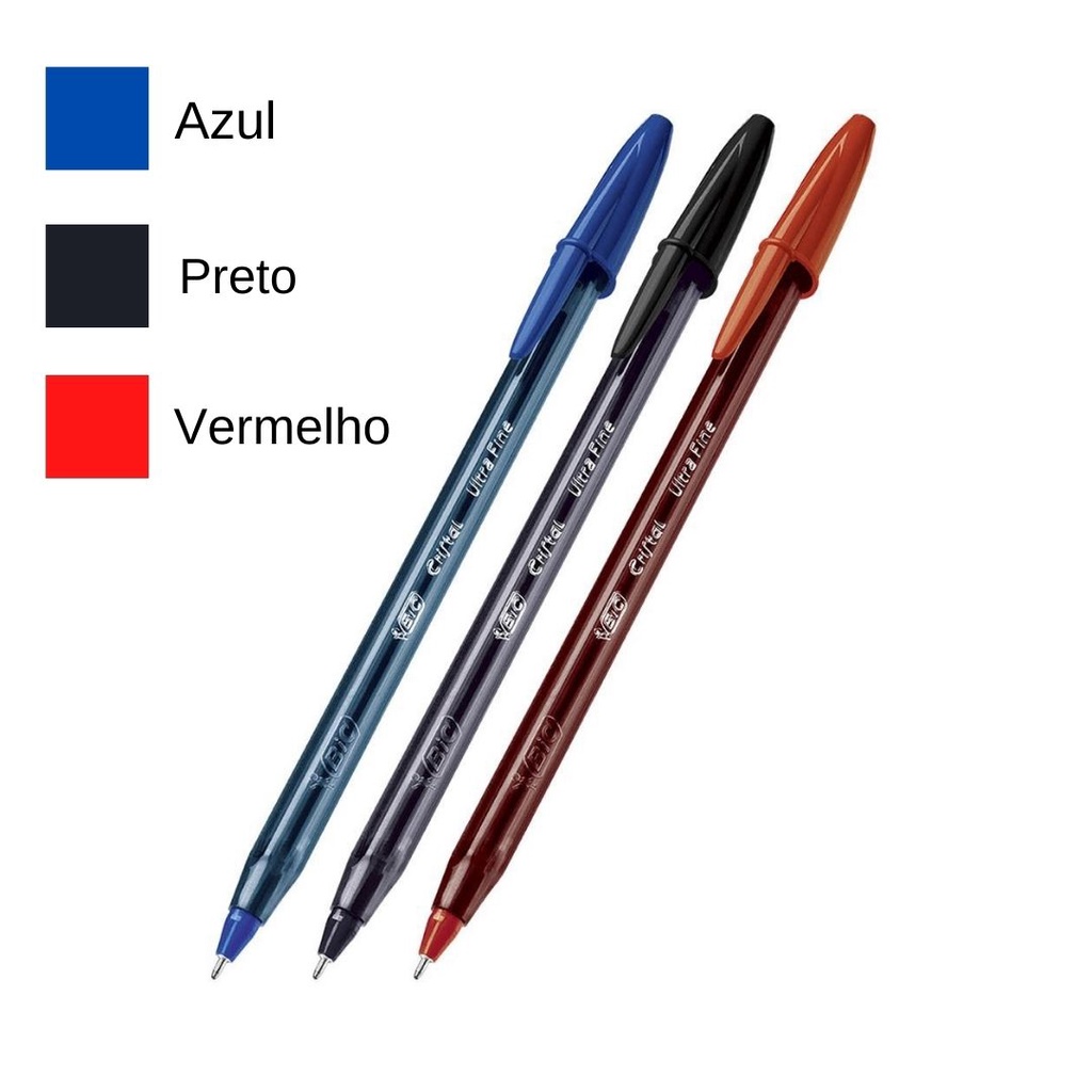 Caneta Bic Cristal Ultra fina 0.7mm kit c/03 canetas - cores a escolher